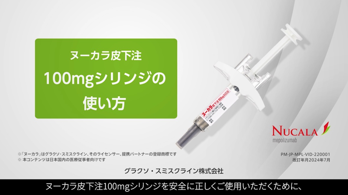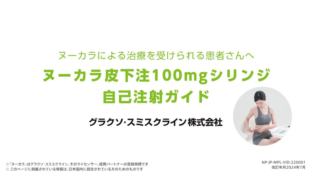 ヌーカラ100mgシリンジの使い方、自己注射方法などについて動画でご紹介しています