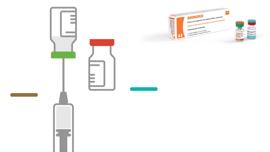 Pulver och suspension till injektionsvätska, suspension (0,5 ml), för intramuskulärt bruk. Herpes zoster-vaccin (rekombinant,adjuvansinnehållande) Indikation: Shingrix är avsett för förebyggande av bältros (herpes zoster) och postherpetisk neuralgi (PHN), hos vuxna i åldern 50 år och äldre samt vuxna 18 år och äldre med ökad risk för bältros. Varningsföreskrifter och begränsningar: Liksom med andra vacciner ska vaccination med Shingrix skjutas upp om personen har en akut svår febersjukdom. Administrera inte vaccinet intravaskulärt eller intradermalt. Shingrix kan ges till individer som tidigare vaccinerats med levande attenuerat HZ-vaccin eller haft bältros. För fullständig förskrivarinformation se www.fass.se. Datum för översyn av produktresumén 2025-06-17.